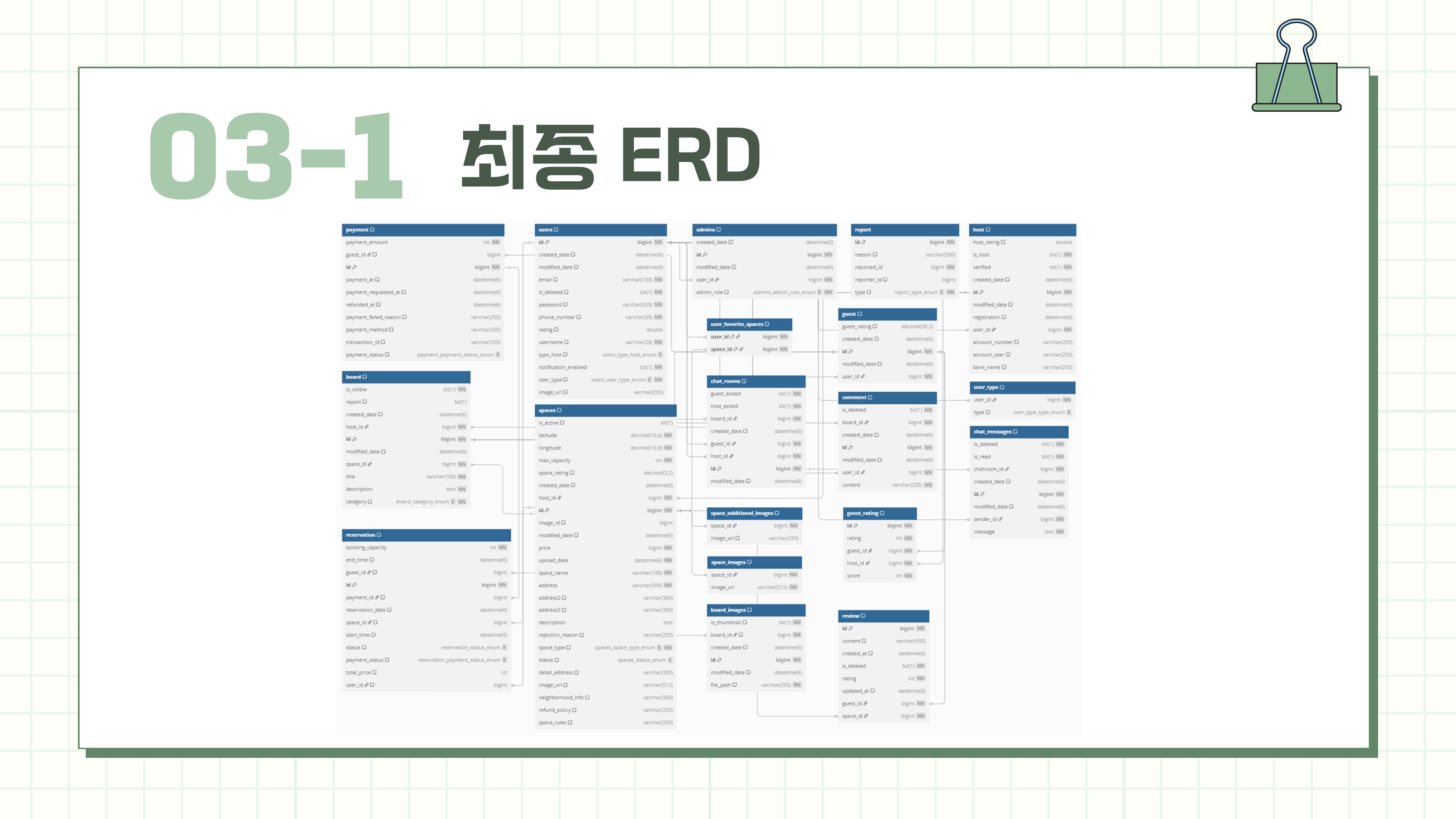 - 유저 및 채팅/공간 부분에 대한 ERD도 여러번의 개선 끝에 필요한 부분을 남기고 불필요한 부분은 제거해낼 수 있었음'