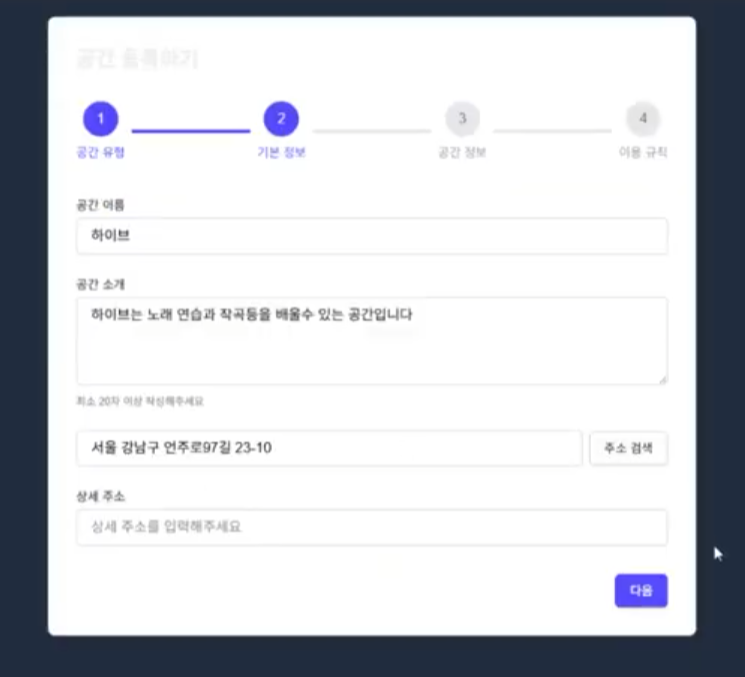 4) 공간 등록 페이지