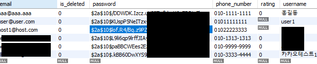 DB에서는 패스워드가 이처럼 암호화되어서 저장되어있는데 이는 BCrypt 방식을 사용하여 암호화한 것