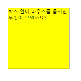 <div id="box2"> 박스 안에 마우스를 올리면 무엇이 보일까요? </div>
