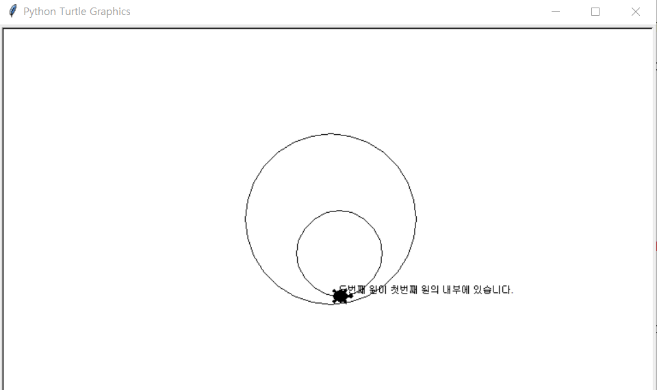 t.write("두번째 원이 첫번째 원의 내부에 있습니다.")