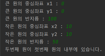 print("두번째 원이 첫번째 원의 내부에 있지 않습니다.")