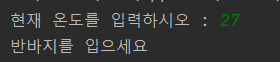 사용자에게 현재 온도를 질문하고 온도가 25도 이상이면 반바지 추천,