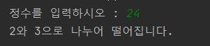 사용자로부터 정수를 받아서 이 정수가 2와 3으로 나누어떨어질 수 있는지 출력