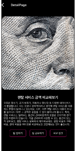 메인화면의 리스트화된 꿀팁들 중 하나를 눌러보게되면, Card 섹션으로 넘어가 상세내용이 화면에 보여지게 됩니다.