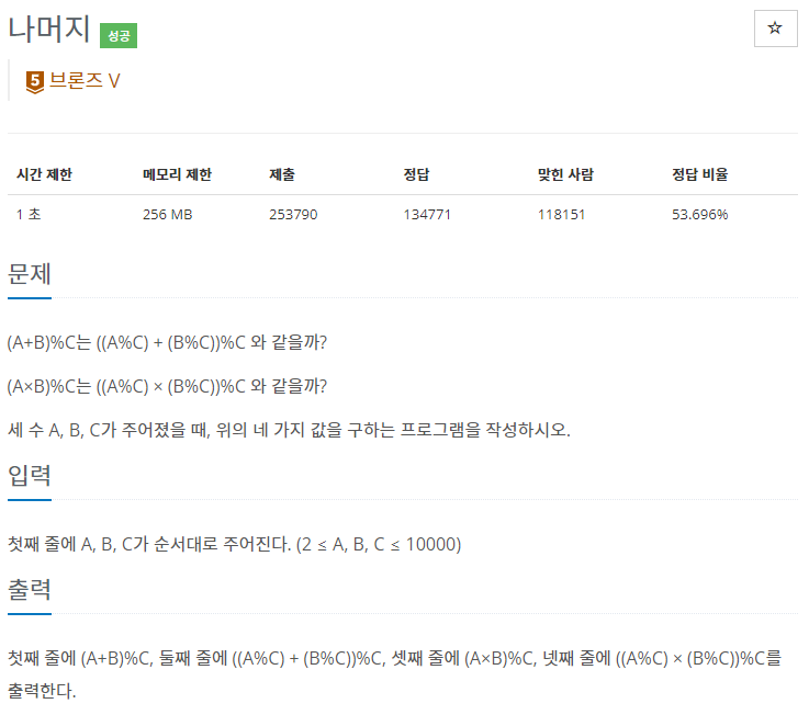 // 백준 10430번 : 나머지
