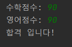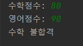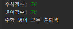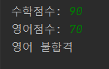 수학점수 및 영어점수를 4가지 유형으로 판단하여 "합격", "수학 불합격", "영어 불합격", "수학 영어 모두 불합격"으로