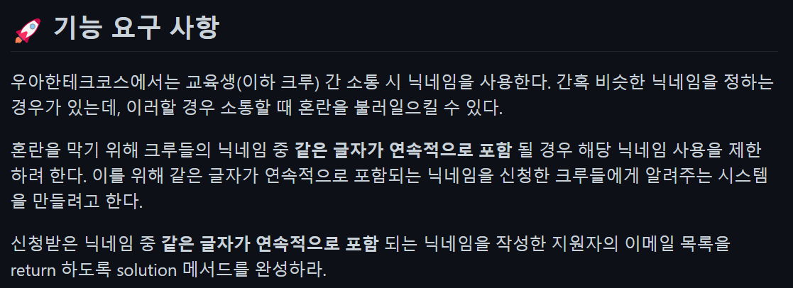기능 요구 사항을 다양하게 제시하고, 제한사항 또한 주어지면 그것에 맞게 알고리즘을 구현해내면 되는 것이었다.
