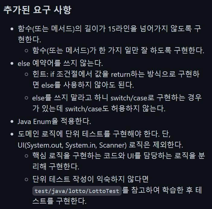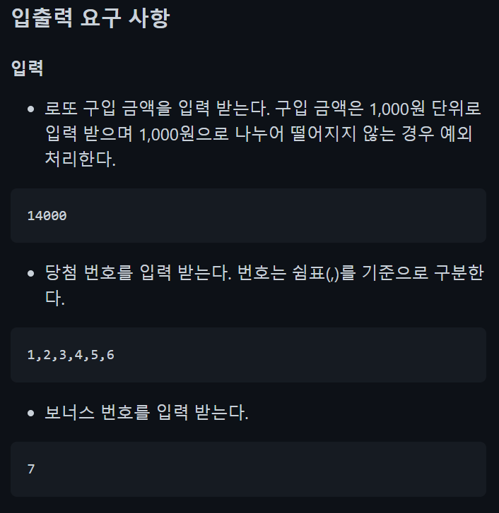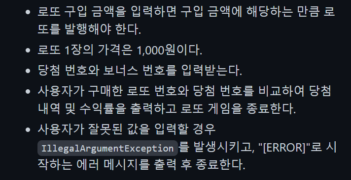 - 로또 게임 기능을 구현해야 한다. 로또 게임은 아래와 같은 규칙으로 진행된다.