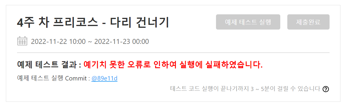 "์๊ธฐ์น ๋ชปํ ์ค๋ฅ๋ก ์ธํ์ฌ ์คํ์ ์คํจํ์๋ค" ๋ ๋ฌธ๊ตฌ๋ ๊ณผ์ ๋ฅผ ์ํํ๋ฉด์ ๋ง์ด ๊ฒช์ด๋ดค์ง๋ง ์ด๋ฒ 4์ฃผ์ฐจ์์๋
