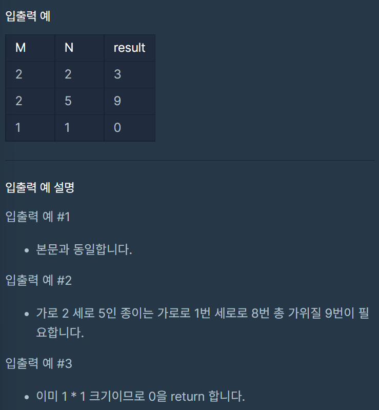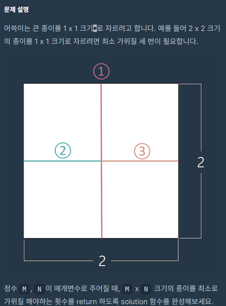 2. M x N 크기의 종이를 최소로 가위질 해야하는 횟수 구하기