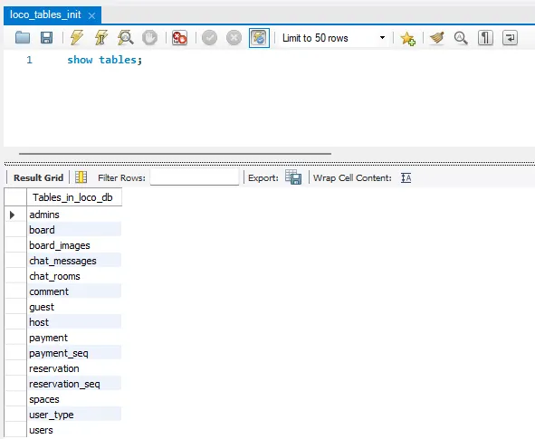 - show tables; 로 마이그레이션된 테이블들 확인 완료